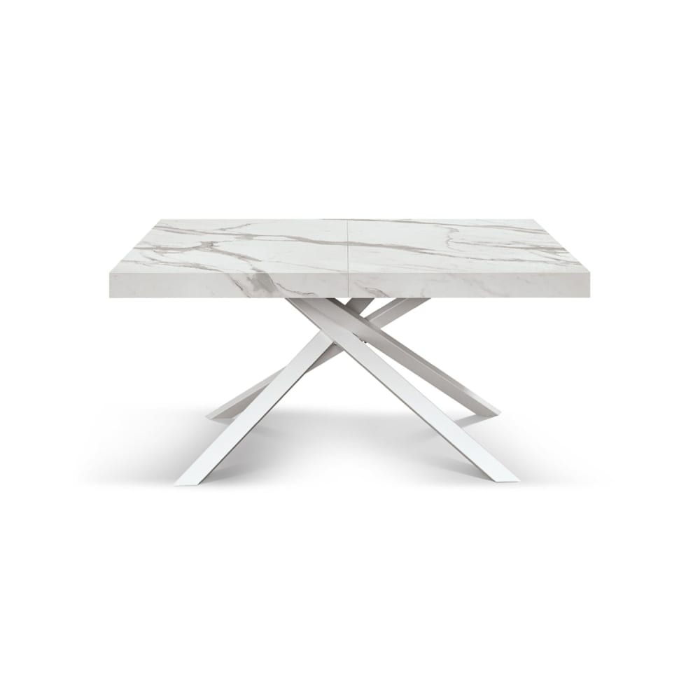 Tavolo in legno bianco, base bianca, allungabile 160x90 - 240x90 cm