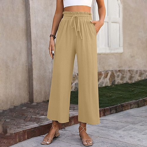Per donna Pantaloni in cotone e lino Gamba larga Chinos Vacanza Streetwear Casual Lunghezza alla caviglia Vita media Tinta unica Semplice Coulisse Tasca Confortevole Traspirante Micro-elastico