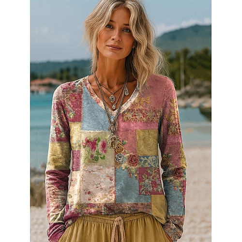 Rundhalspullover VERO MODA "VMLARA LS O-NECK PULLOVER GA BOO REP", Damen, Gr. M, winetasting detail:with baby lavender wave pattern, Strick, Obermaterial: 58% Polyester, 38% Polyacryl, 4% Elasthan, gemustert, regular fit normal, Rundhals, Rippstrickbündch