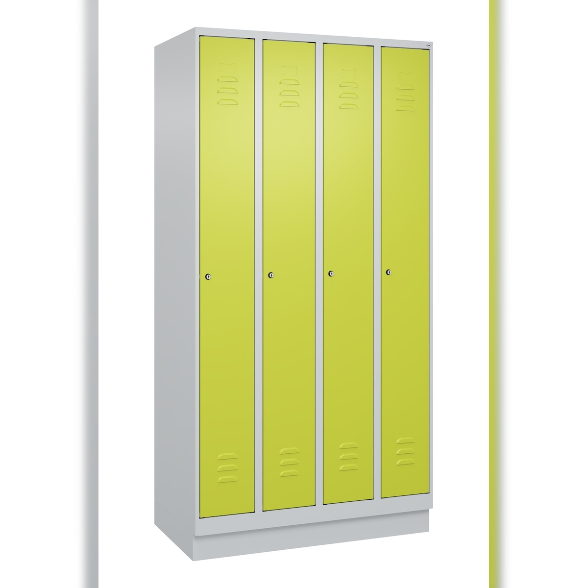 C+P Spind Classic PLUS, Sockel, 4 Abteile, HxBxT 195x100x50cm, Zylinderschloss, Hellgrau/Clowngrün von PROREGAL