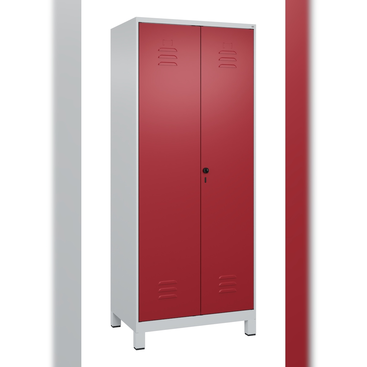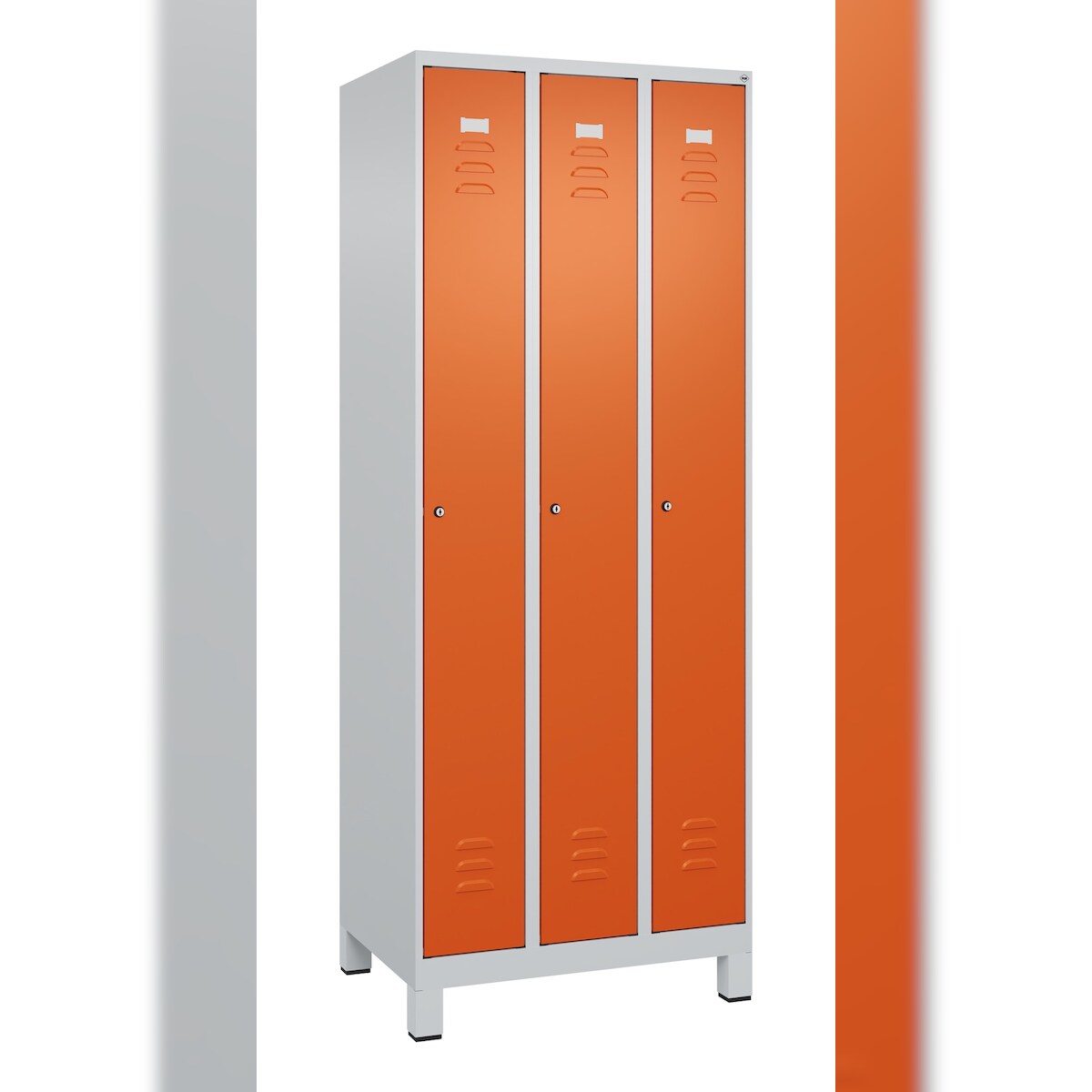 C+P Spind Classic PLUS, Füßen, 3 Abteile, HxBxT 195x75x50cm, Zylinderschloss, Hellgrau/Reinorange von PROREGAL