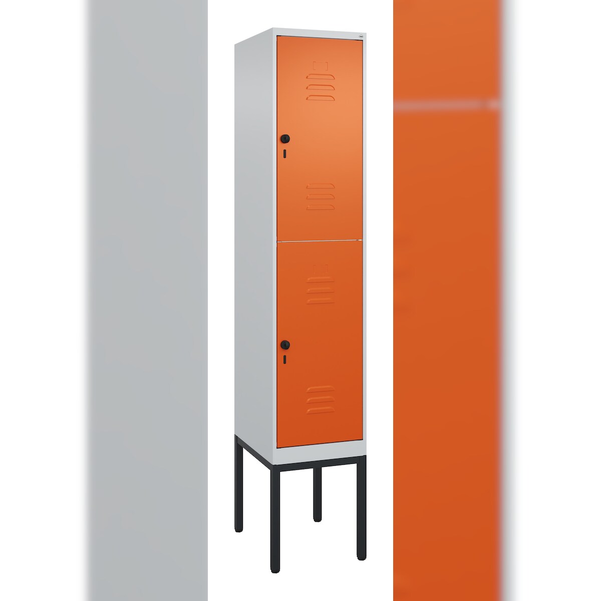 C+P Spind Classic PLUS, Gestell, 2 Abteile, HxBxT 212x40x50cm, Sicherheitsdrehriegel, Hellgrau/Reinorange von PROREGAL