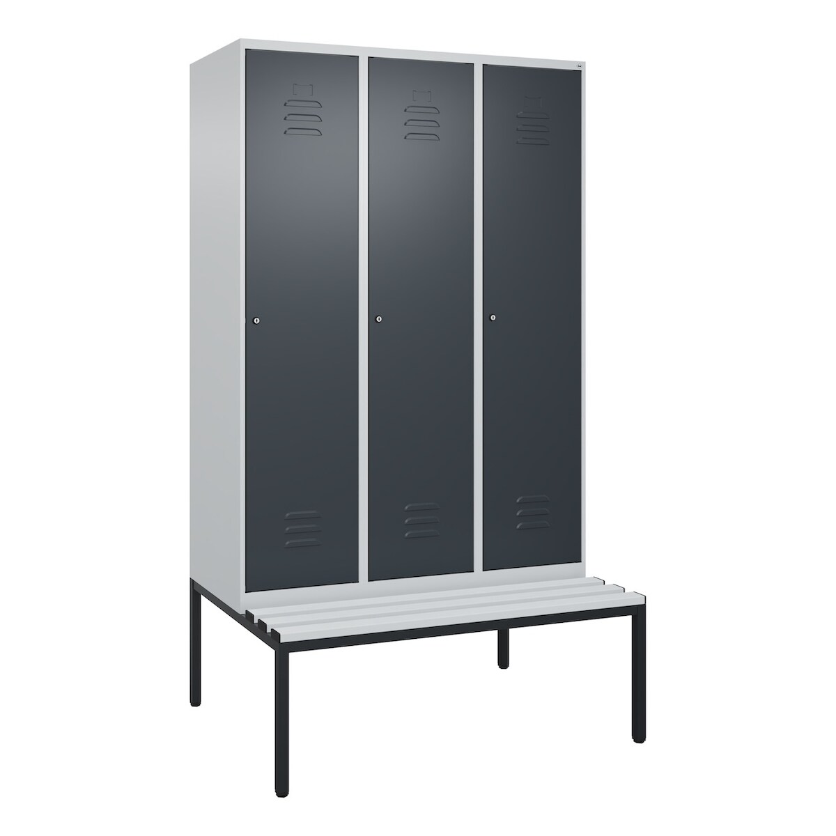 C+P Spind Classic PLUS, Kunststoff untergebaute Sitzbank, 3 Abteile, HxBxT 212x120x82cm, Zylinderschloss, Hellgrau/Anthrazit von PROREGAL