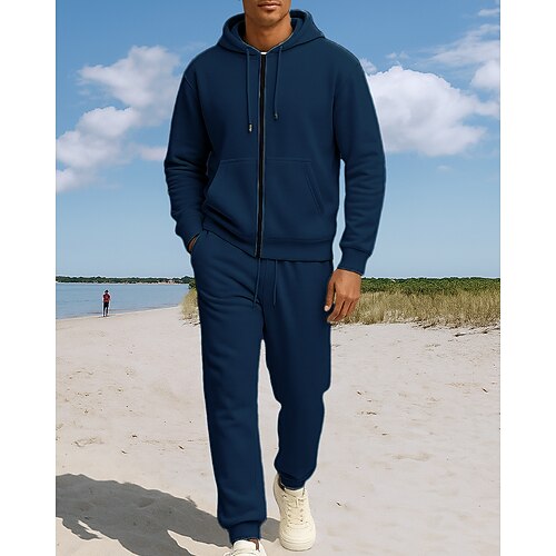 Per uomo Tuta da Ginnastica Felpa con cappuccio in pile Abiti in due pezzi Cerniera completa con tasca Tinta unita Completo Abbigliamento Autunno Nero Verde militare All'aperto Viaggio Sportivo Vita