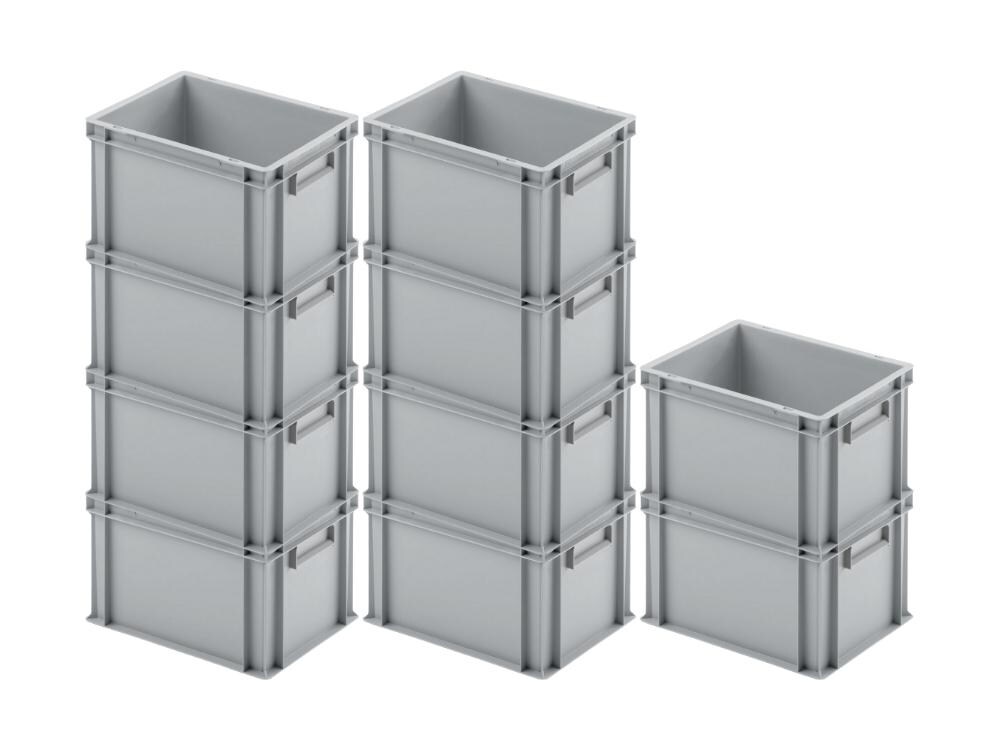 PROREGAL 10x Eurobehälter mit geschlossenem Griff | HxBxT 23,5x30x40cm | 22 Liter | Grau | Eurobox, Transportbox, Transportbehälter