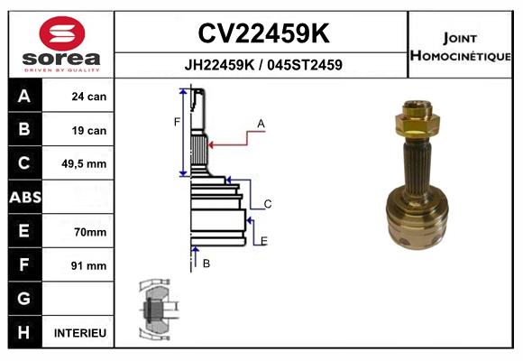 EAI Gelenksatz, Antriebswelle CV22459K vorne rechts links 70mm für CITROEN PEUGEOT TOYOTA SUBARU