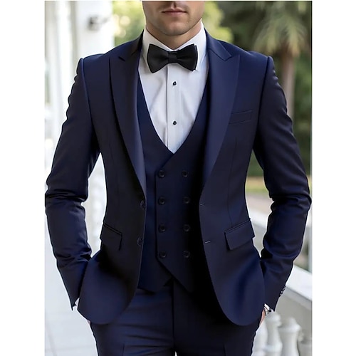 Uomo Matrimonio Casuale Abiti da festa Bavero a lancia Nero Blu scuro Formale Tinta unita Vestibilità su misura 3 pezzi Monopetto Due Bottoni