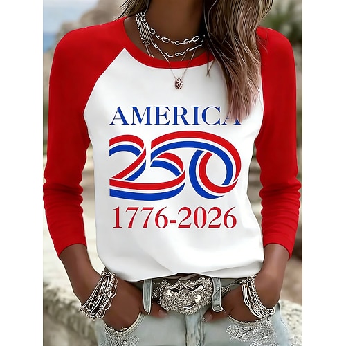 Giorno dell'Indipendenza Americana Per donna Maglietta Grafico Lettera Vintage Elegante Classico Manica Lunga Girocollo Top Regolari Quotidiano Weekend Stampato Blu Rosso Estate Primavera Autunno