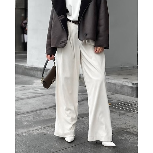 Per donna Gamba larga Chinos Vacanza Streetwear Casual Lunghezza intera Vita media Tinta unica Tasca Fascia Elastica Comodo Comodità Micro-elastico Quotidiano All'aperto Streetwear Marrone scuro