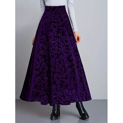Per donna Gonna Linea A Elegante Moda Casual Maxi Vita Alta Gonne Floreale Floreale Micro-elastico Streetwear Quotidiano Vino Blu Viola Verde Primavera Velluto