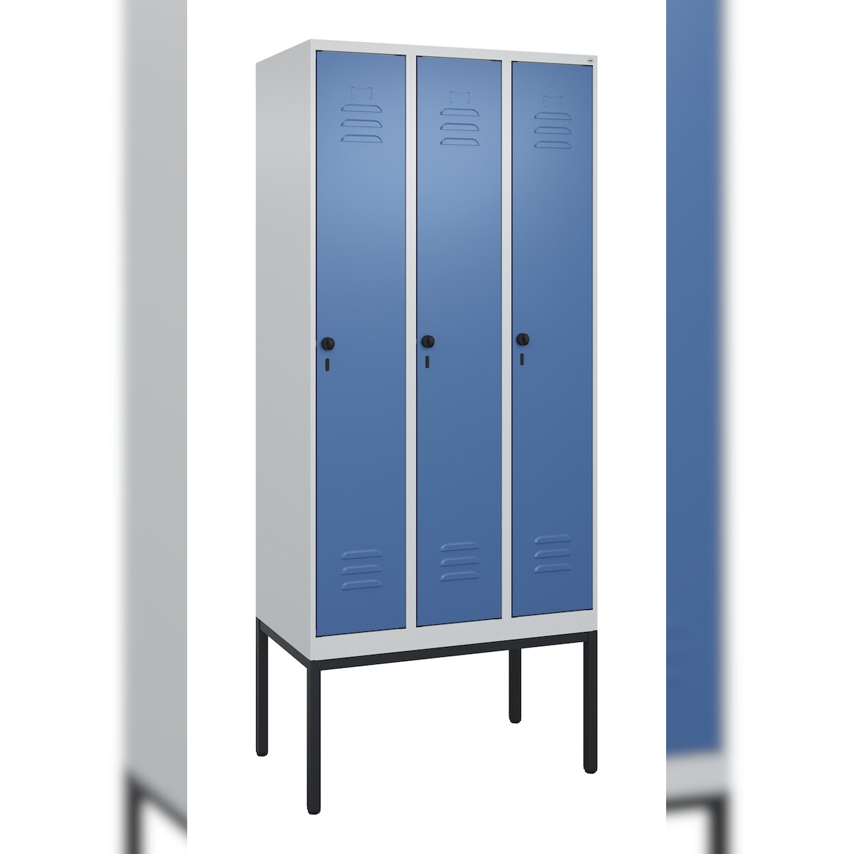C+P Spind Classic PLUS, Gestell, 3 Abteile, HxBxT 212x90x50cm, Sicherheitsdrehriegel, Hellgrau/Fernblau von PROREGAL