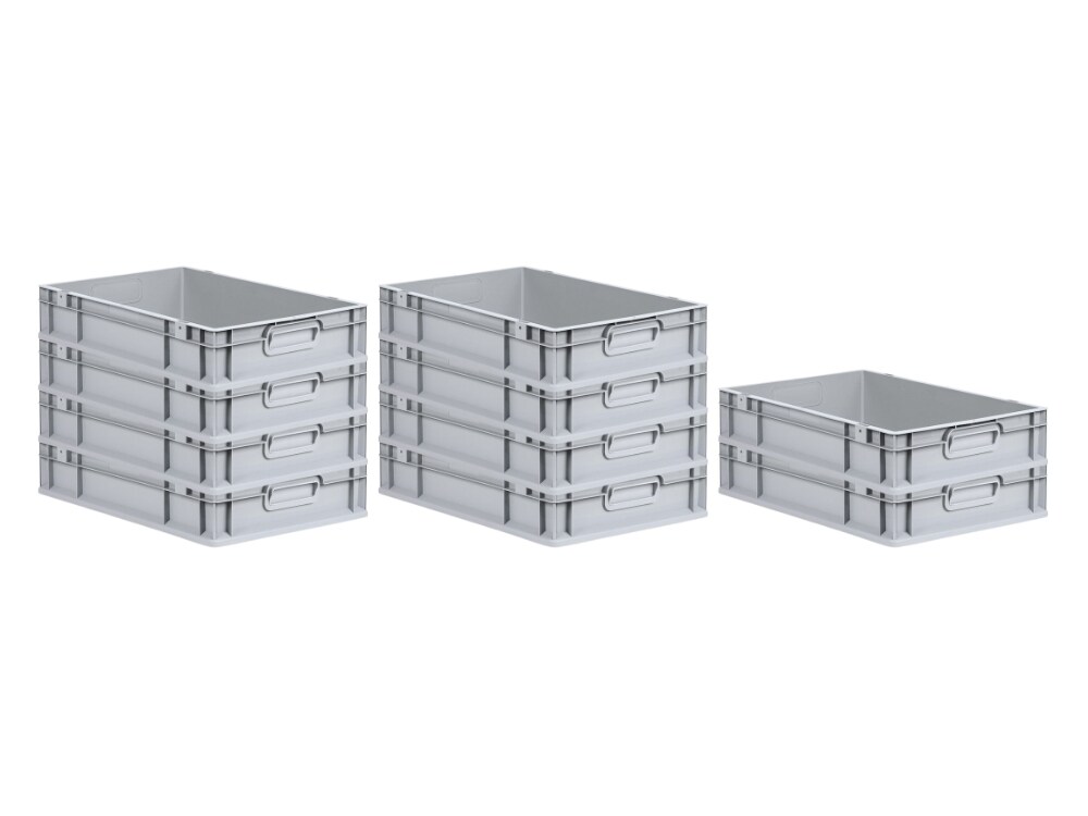 PROREGAL 10x Eurobox NextGen Grip | HxBxT 12x40x60cm | 23 Liter | Griffe geschlossen | Glatter Boden | Eurobehälter