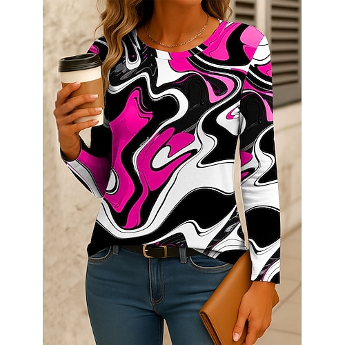 Per donna Maglietta Grafico Geometrico Blocco di colori Vintage Elegante Classico Manica Lunga Girocollo Top Regolari Quotidiano Stampato Giallo Rosa Rosso Blu Primavera Autunno Inverno