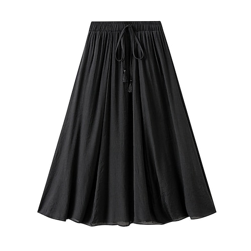 Per donna Gonna Gonne di lino Di tendenza Informale Medio Vita alta Gonne Tinta unita A cordoncino Casual / quotidiano Fine settimana Nero Rosa Blu Cachi Estate Cotone e lino