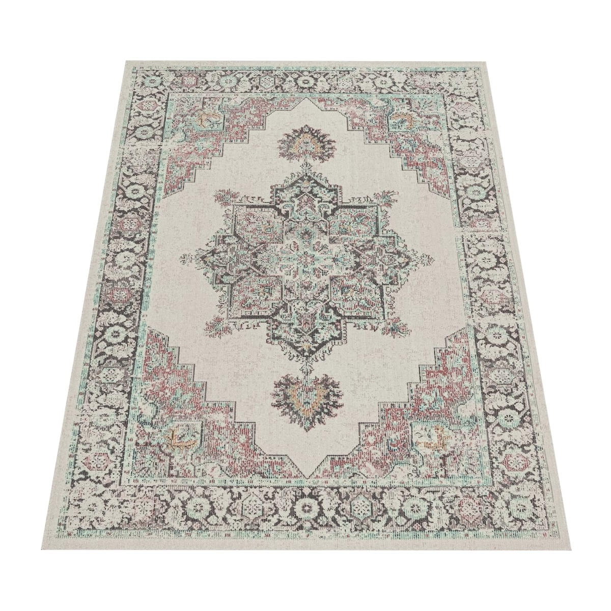 KADIMA DESIGN Outdoor Teppich Orientalisch Vintage Balkon, Terrasse schmutzabweisend Creme Rechteckig 120x170 | 100% Polypropylen | Florhöhe: 2 mm | pflegeleicht