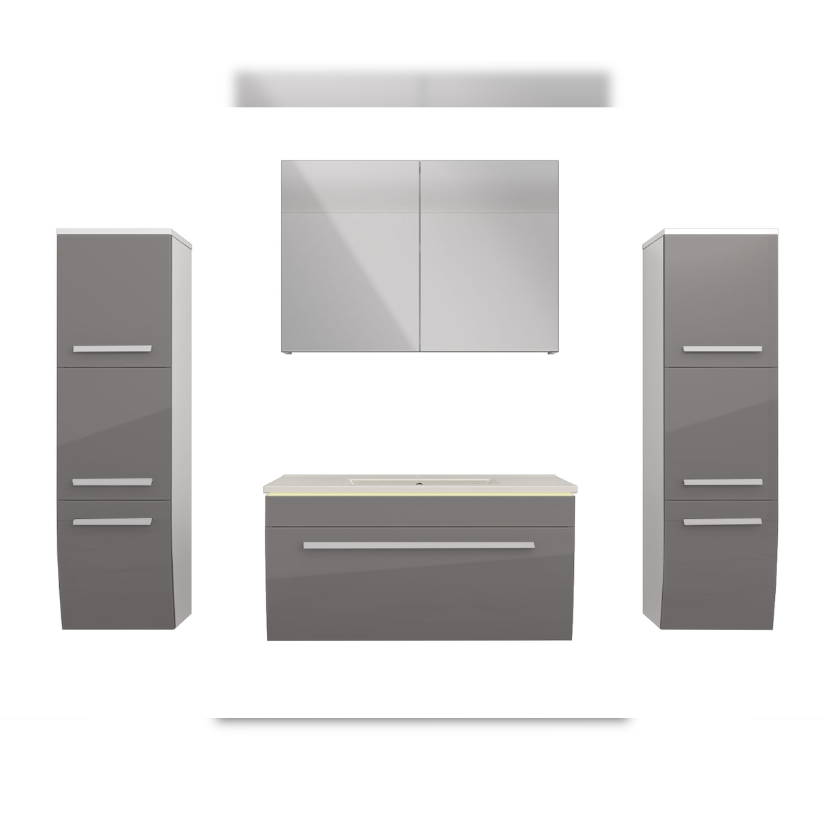 Badmöbel-Set INOSIGN "Siena, 4 teilig, bestehend aus:", weiß (rauchsilber nb, weiß hochglanz), B:190cm H:191cm T:34cm, Holzwerkstoff, Kastenmöbel-Sets, Hochschrank, WBU, Badspiegel, Waschmaschinenumbauschrank