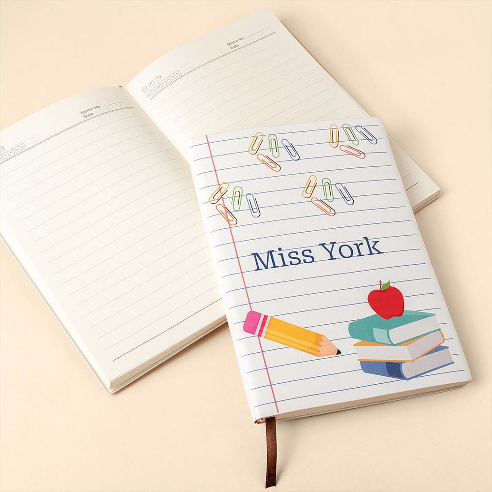 Personlig Pencil Apple Book Design A5 Tykk lærfôret notatbok med navn og 75 sider Appreciation Back to School-gave til læreren