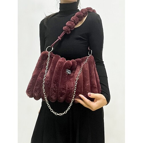 borsa a tracolla da donna in pelliccia sintetica, multicolore, stili di trasporto versatili, tracolla a catena alla moda, ideale per abbigliamento casual e da festa