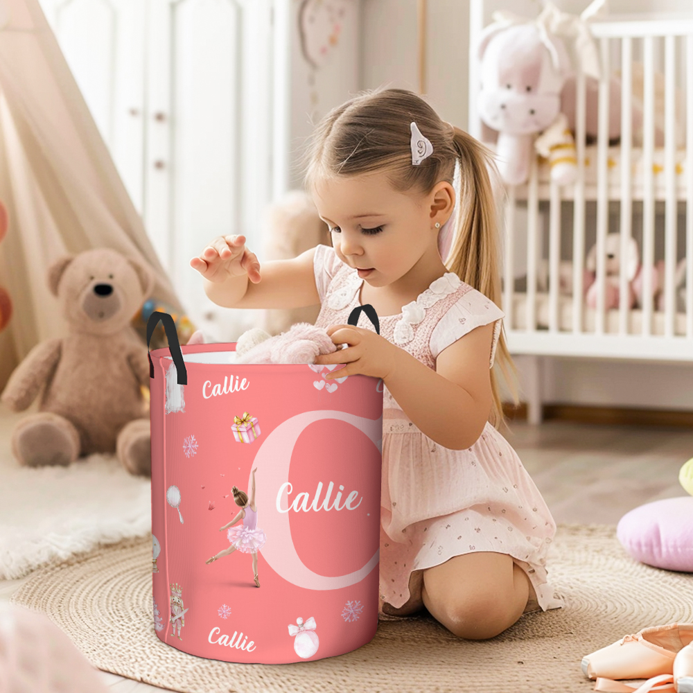 Personalizzato Farfalla Balletto Personaggio dei cartoni animati Cestino portaoggetti pieghevole per iniziali con manico Regalo di compleanno per bamb