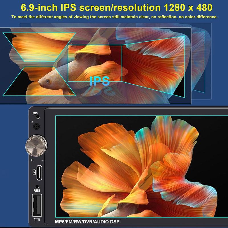 1DIN 6,9'' CarPlay Android Auto Kabellos/Kabelgebunden Universelles Autoradio MP3 MP5 Multimedia FM Stereo 1 DIN USB Typ-C Schnellladung