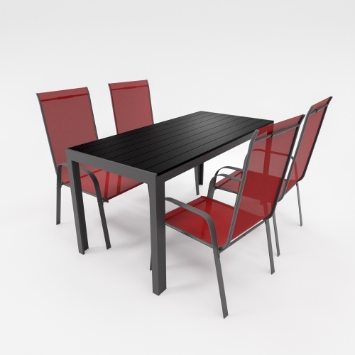 Lex Essgruppe Set Alu Tisch 5-tlg. 4x Stapelsessel Gartenmöbel Sitzgruppe Gartenset burgundrot : Burgundrot
