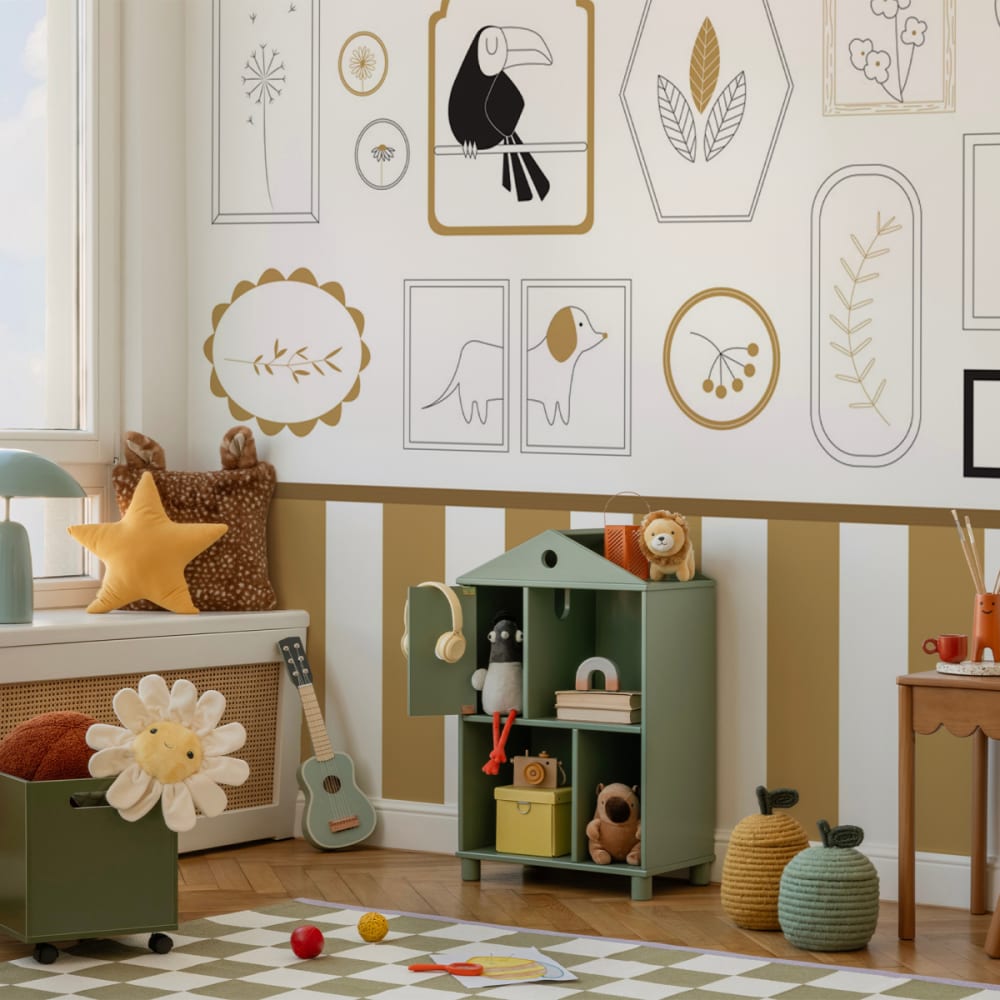 Carta da parati panoramica cornici infantili, Giallo 150 x 2
