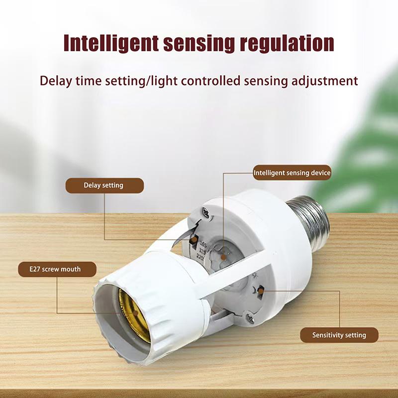 1 stk 360 graders infrarød bevegelsessensor E27 sokkel lampeholder med sensor justerbar induksjonslys forsinkelsesbryter