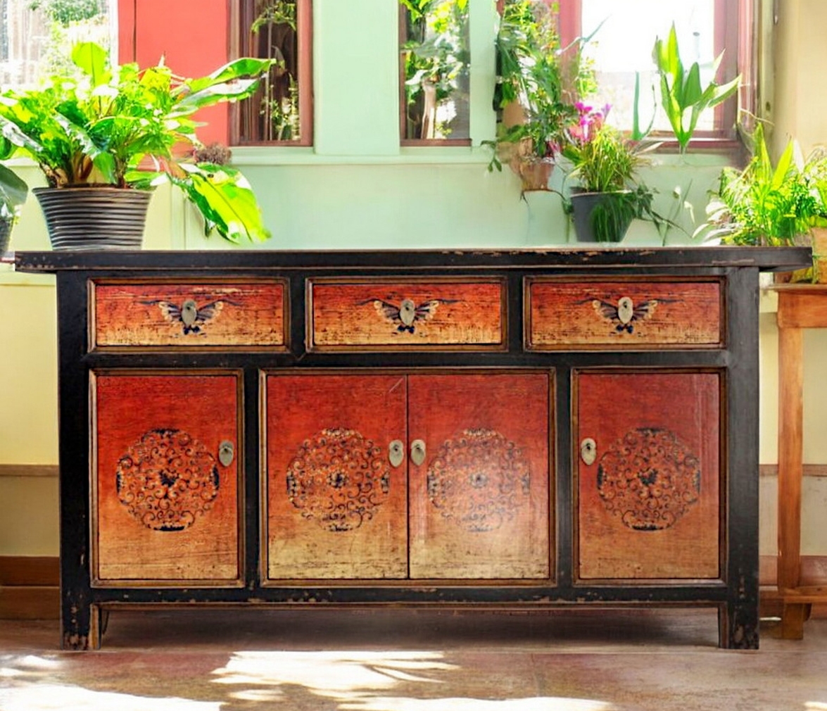 OPIUM OUTLET Möbel Kommode Schrank Sideboard Hochzeitsschrank "Fire" 34372-2 orange-schwarz asiatisch chinesisch orientalisch