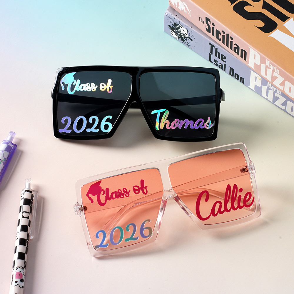 Personlig Graduation Cap Class of 2026 Gradient Square Solglasögon med år och namn Party Favor Graduation Ceremony Gift for Graduates Friends