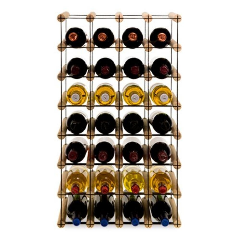 PROREGAL Modulares Weinregal VINOTECA MOD METAL | HxBxT 72,5x42,5x24,5cm | 4x7 Flaschen | Massives Kiefernholz | Natur | Flaschenregal
