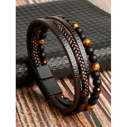 Set di braccialetti da uomo in lega e similpelle con perline, cinturino intrecciato multistrato con chiusura magnetica, gioielli punk alla moda per casual, feste e regali