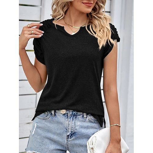 Blusa da donna floreale elegante quotidiana alla moda con maniche corte colletto regolare maglie lavoro quotidiano vacanza pizzo bianco giallo blu arancione verde estate