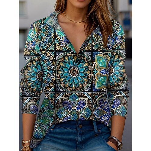 Per donna Cardigan Vintage Streetwear Giornaliero Fantasia geometrica Cavi Con cappuccio Lacci Manica lunga Maglie lunghe Maglia Ufficio Per eventi Per uscire Cachi Autunno Inverno