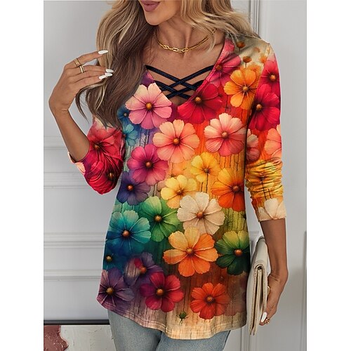 Per donna maglietta Color Block Informale Manica corta Girocollo Maglie lunghe Giornaliero Stampa Bianco Vino Grigio Estate