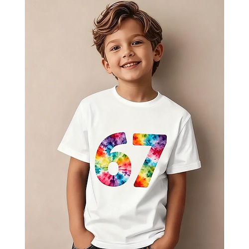 Cotone Bambini Ragazzi Nero Bianco Grafico Gergo divertente 67 Maglietta Blusa Girocollo Manica Corta All'aperto Abbigliamento Quotidiano Moda Streetwear Designer Stampa Estate