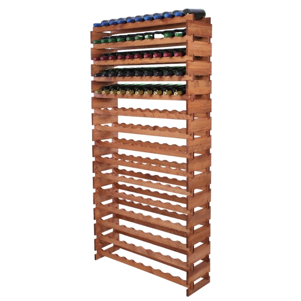 Proregal Weinregal VINOTECA FLEX PRO | HxBxT 205x103x28cm | 150 Flaschen auf 15 Ebenen | Massives Kiefernholz | Braun geölt