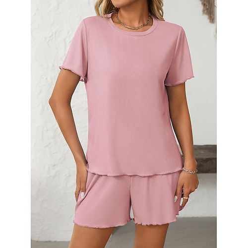 Per donna Set di biancheria in cotone Blusa Set di Pantaloncini Manica Corta Scollo a V Tinta unica Foro Attivo Quotidiano Ferie Blu Nero Giallo Estate Vestibilità regolare
