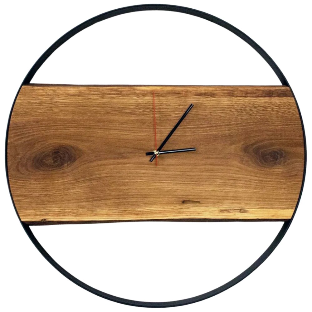DELUKE® Wanduhr groß Holz PHIL [HANDGEFERTIGT] - 58cm ⌀, Eiche, Geräuschlos | Wohnzimmeruhr Holz-Metalloptik Küchenuhr Dekouhr
