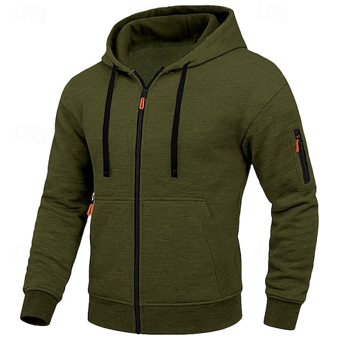 Per uomo Felpa con cappuccio Felpa con cappuccio a zip intera Felpa con cappuccio in pile Verde militare Cachi Grigio Con Cappuccio Semplice Cerniera Tasca Frontale Tattico Sport Outdoor Casuale