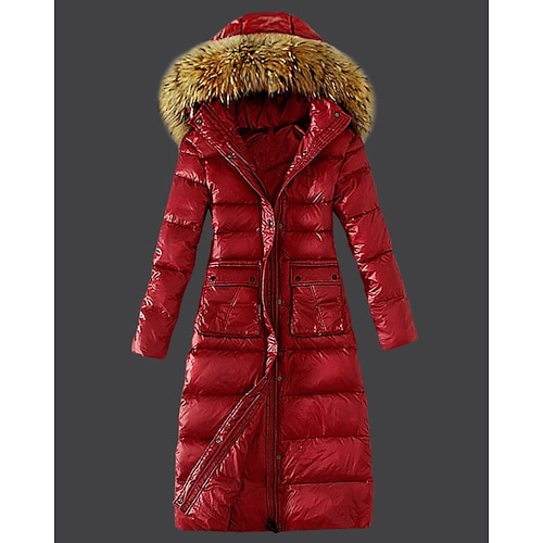 Per donna Piumino Giornaliero Inverno Lungo Cappotto Di tendenza Streetwear Giacca Manica lunga Colletto di pelliccia Collage Nero Rosa Blu marino