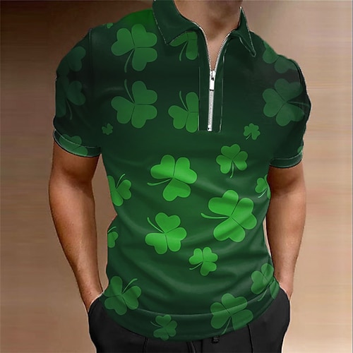 polo da uomo per il giorno di San Patrizio maglietta da golf polo con zip giorno di San Patrizio st. giorno di patrick trifoglio couverture verde strada all'aperto maniche corte cerniera stampa