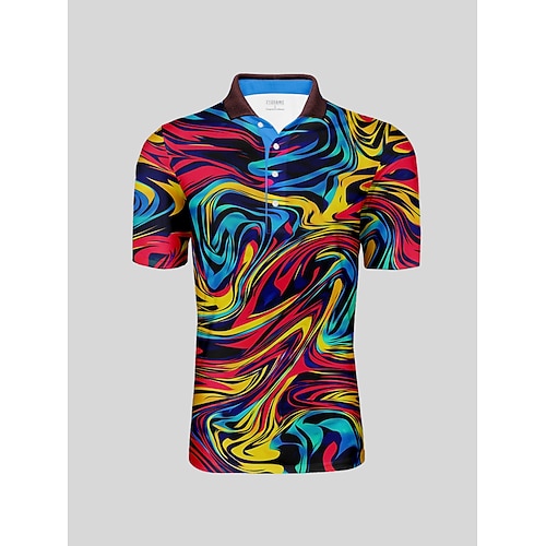 Per uomo Astratto Golf Polo Sportivi Manica Corta Magliette polo Camicie con Colletto Casual Athleisure Bottoni Estate Primavera Blu Giallo Rosso