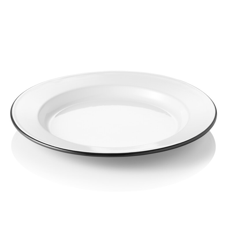 12x Teller GRACE, flach, Ø 26 cm, Emaille, weiß schwarzer Rand