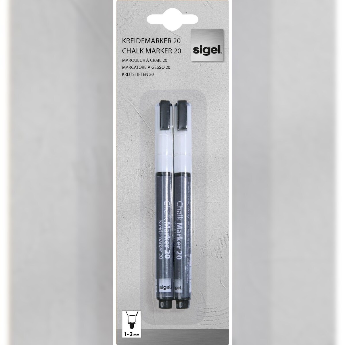 SIGEL Kreidemarker 20 GL178 1-2mm Rundspitze ws 2 St./Pack.
