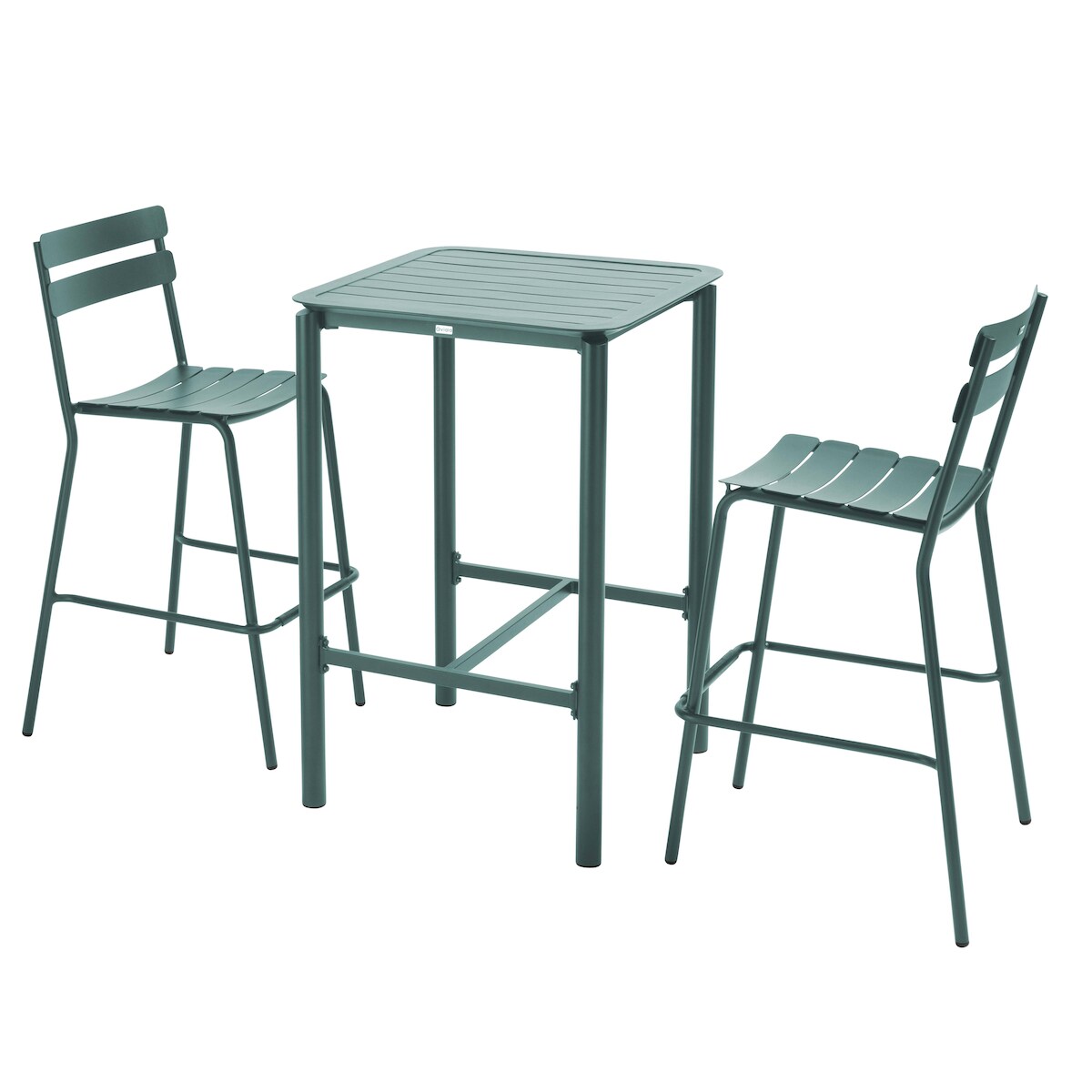 Oviala Business Terrassen-Stehtisch mit 2 Stühlen aus dunkelgrünem Aluminium