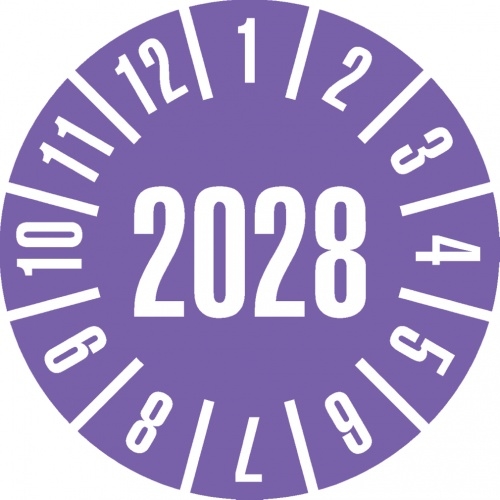 Dreifke® Prüfplakette 2028, violett, Dokumentenfolie, selbstklebend, Ø 20mm, 500 Stk.