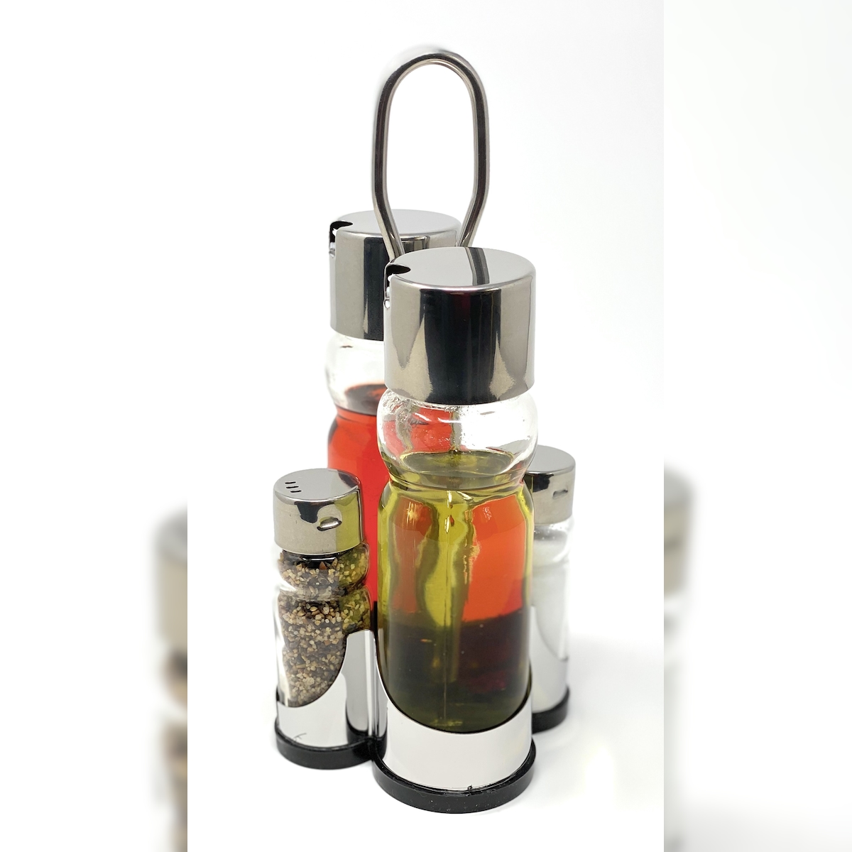 Menage Essig und Öl Spender Glas Salz Pfeffer Set Edelstahl 210 Silber Glas Ölspender
