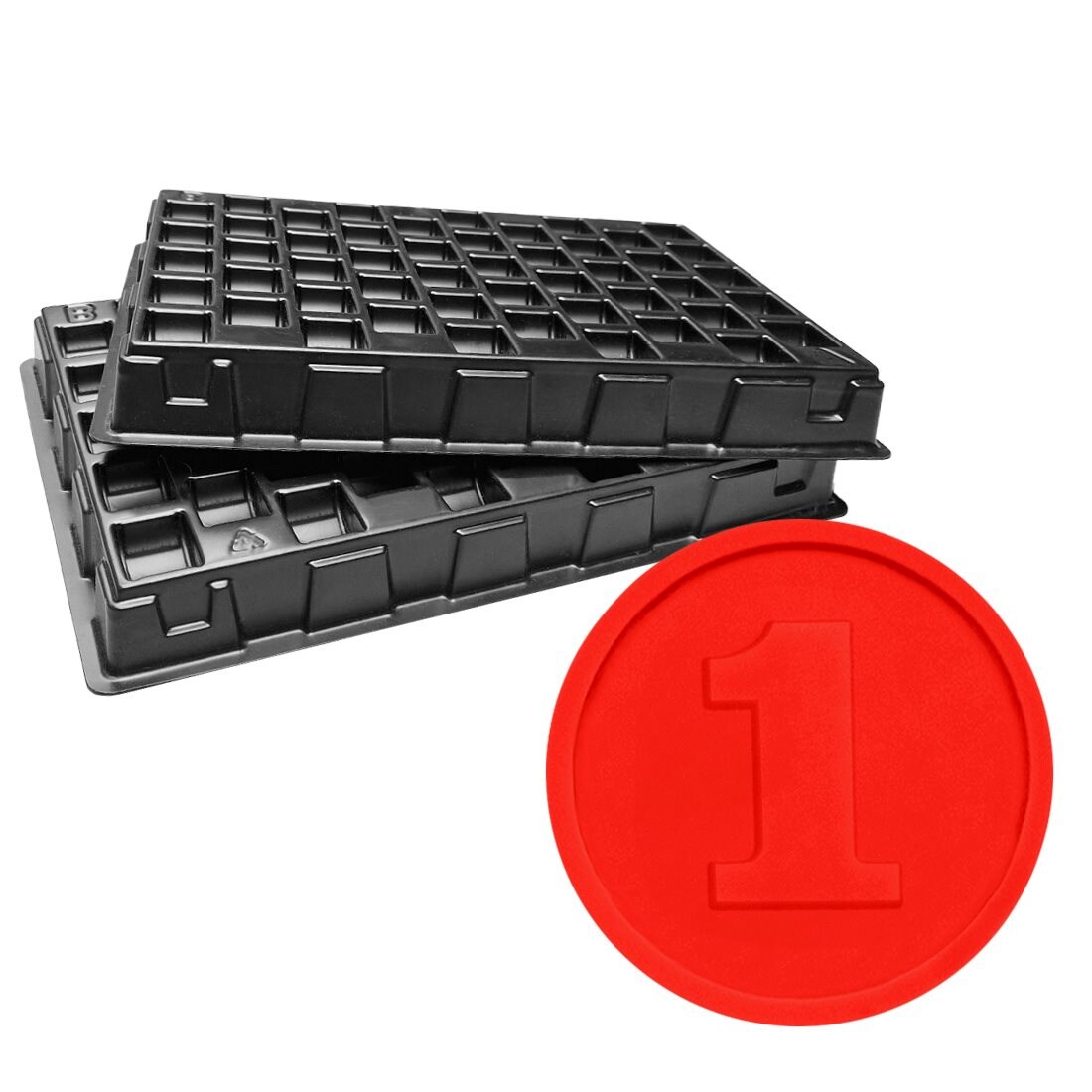 CombiCraft Wertmarken-Chips mit Reliefprägung „1“ in Rot – 1.000 Stück inklusiv zwei Zählbrettern