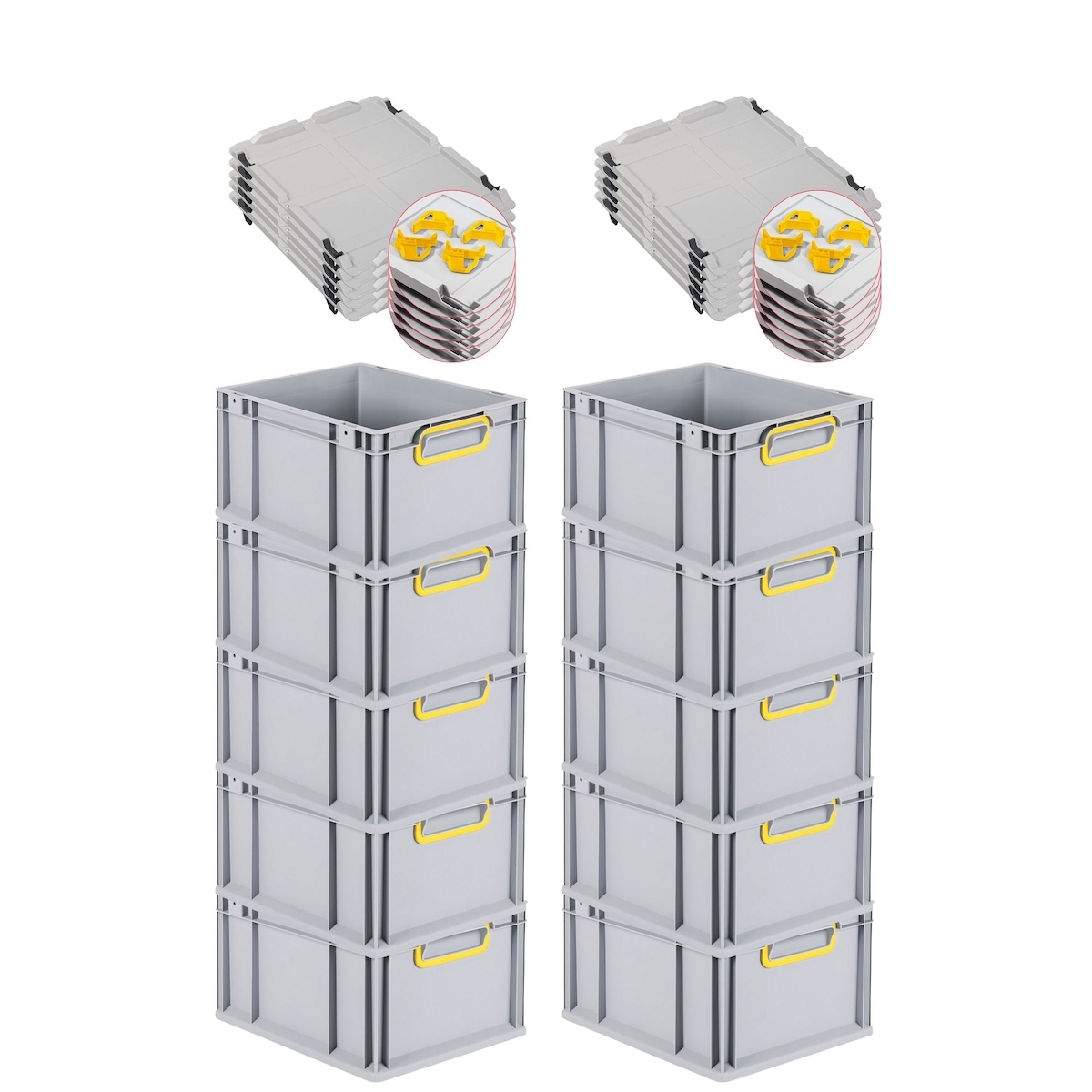 PROREGAL 10x Eurobox NextGen Color mit Auflagedeckel & Schiebeschnappverschlüsse | HxBxT 22x30x40cm | 20L | Griffe gelb zu