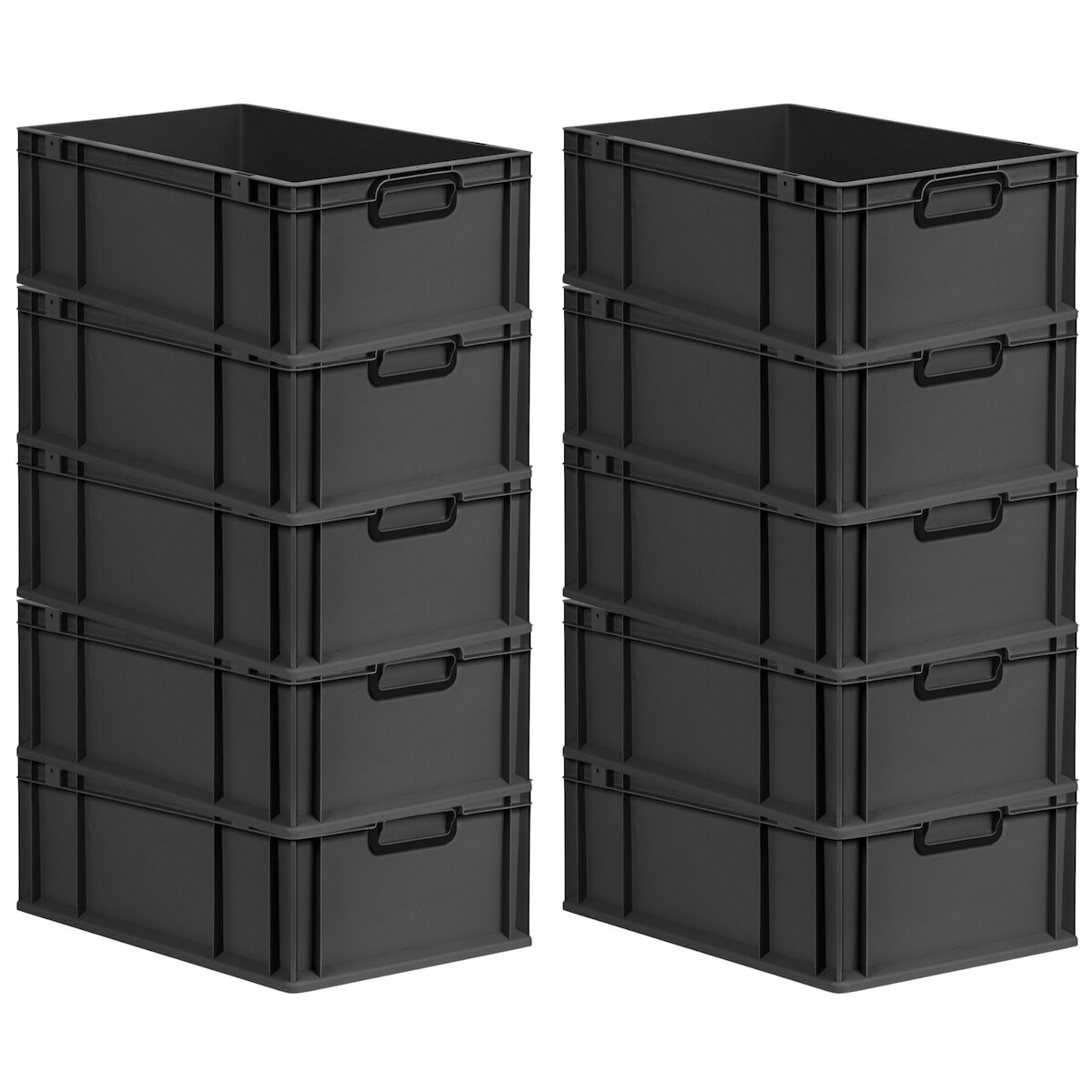 PROREGAL SparSet 10x Eurobox NextGen Color, HxBxT 22x40x60cm, 44 Liter, Griffe schwarz zu, Schwarz, Eurobehälter, Transportbehälter